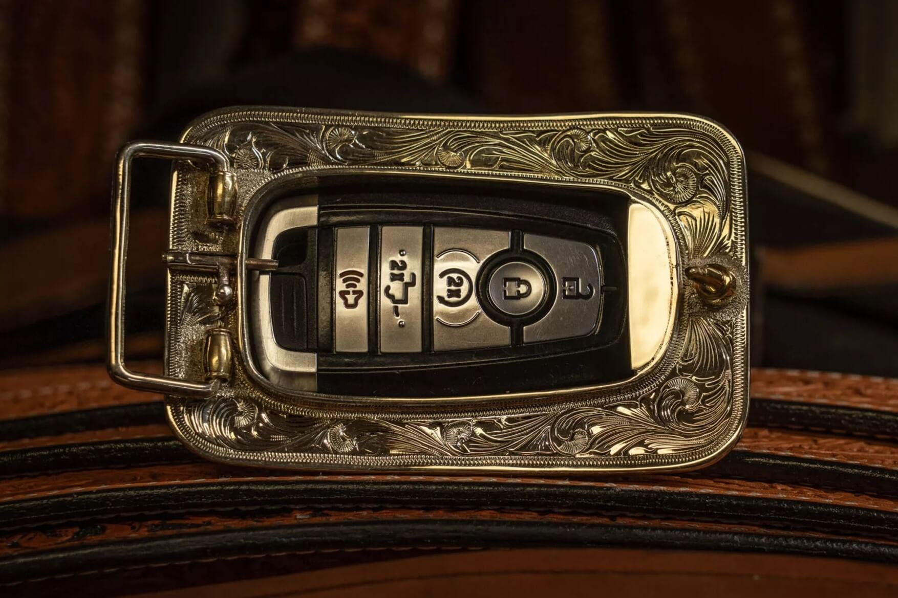 Όταν το στιλ της Άγριας Δύσης συναντά την τεχνολογία, γεννιέται μια αγκράφα που δεν κρατά απλώς τη ζώνη σου, αλλά και τα κλειδιά του Ford σου.