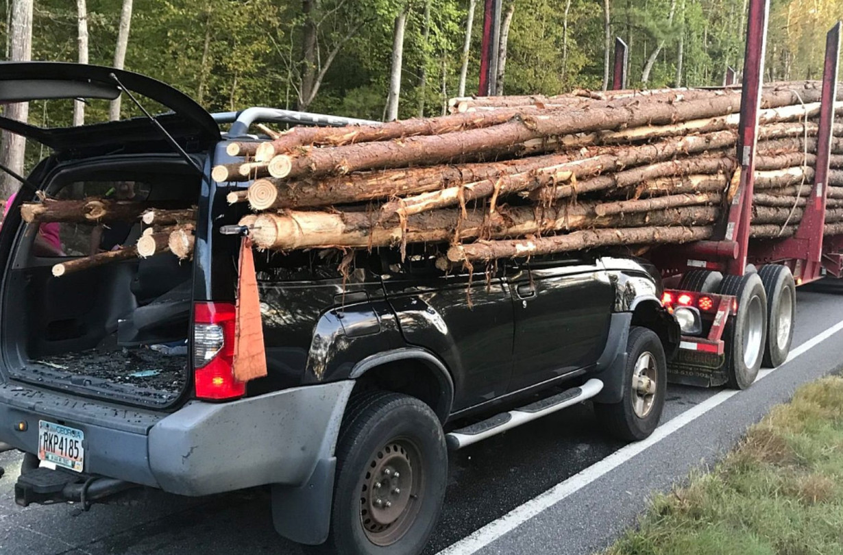 Ένα σοκαριστικό ατύχημα συνέβη την Παρασκευή στην περιοχή Cohutta της πολιτείας Georgia των ΗΠΑ όταν ένα Nissan XTerra συγκρούστηκε με φορτηγό με αποτέλεσμα το φορτίο από κορμούς δέντρων να το διαπεράσει.