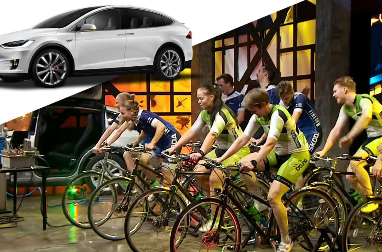 Φορτίζουν το ηλεκτρικό Tesla Model X κάνοντας ποδήλατο! [video]