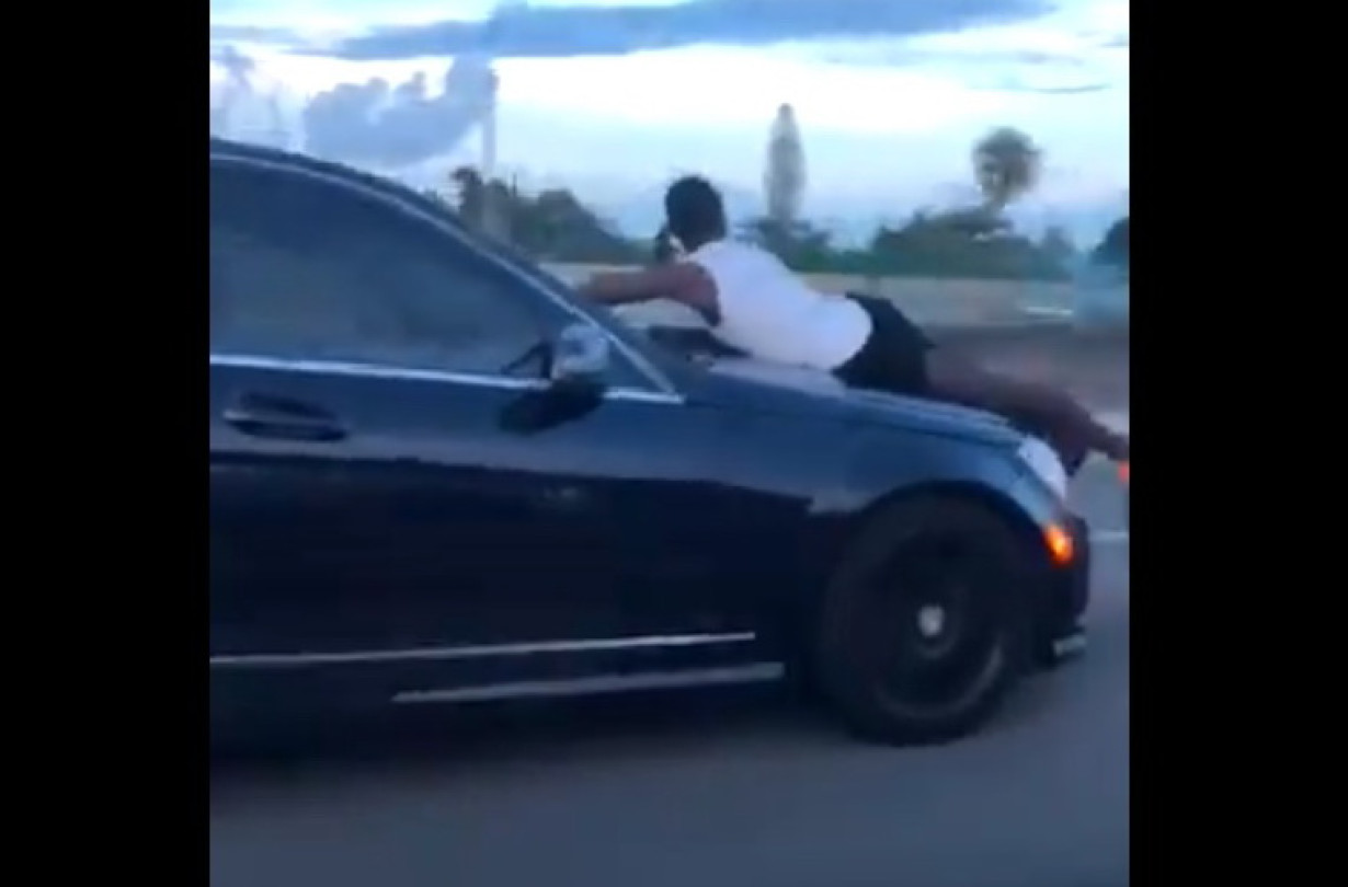 Ο Midah οδηγούσε στη λωρίδα Express της εθνικής Ι-95, όταν είδε κάτι που δεν πίστευε στα μάτια του: Μια Mercedes S-Class να κινείται με 120 km/h έχοντας πάνω στο καπό της έναν άντρα που κρατιόταν στο αυτοκίνητο με το ένα χέρι. Με το άλλο κρατούσε το κινητό και μιλούσε, πιθανώς στη γυναίκα που οδηγούσε το αυτοκίνητο.