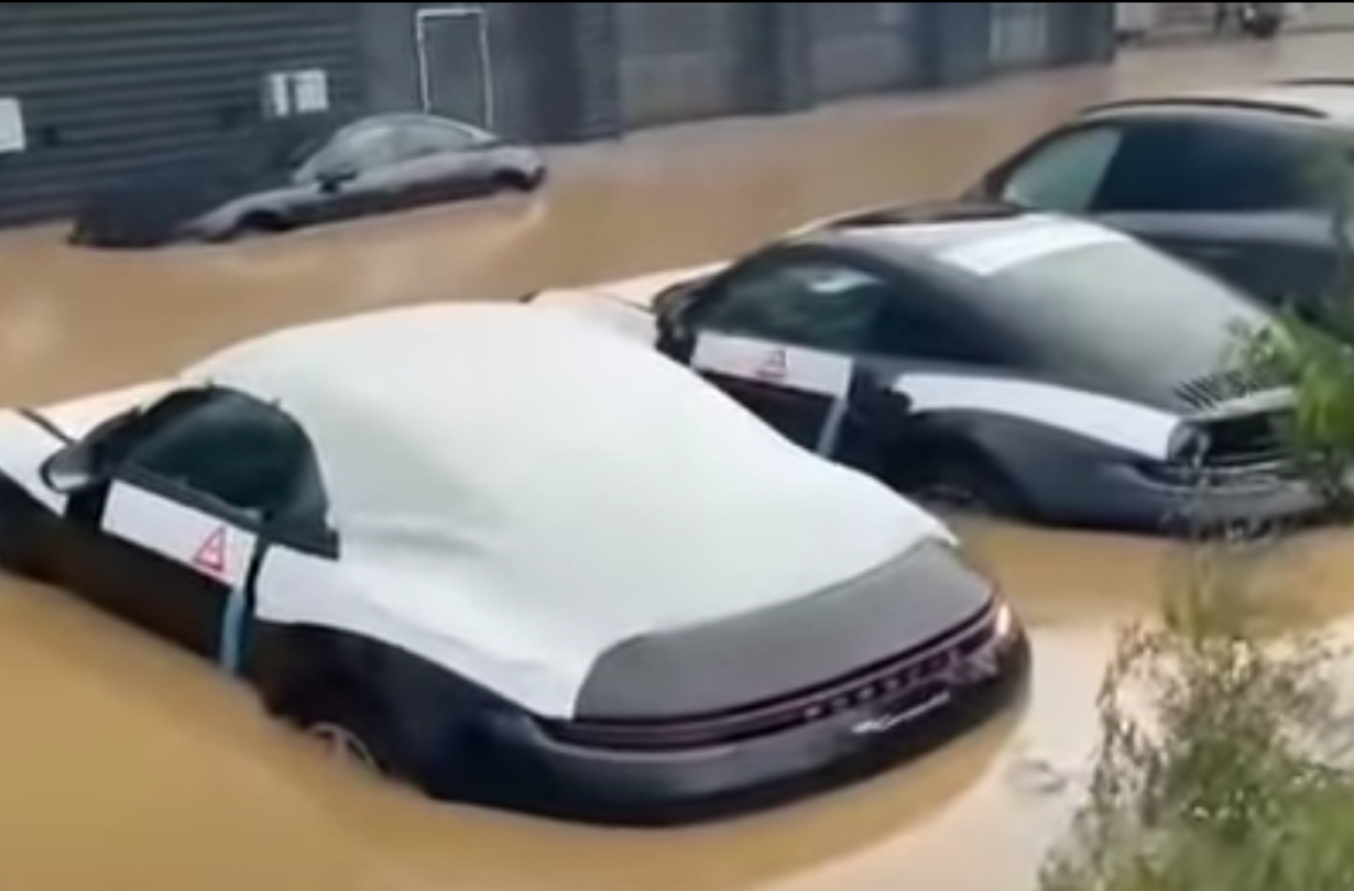 Μετά τις φωτογραφίες και βίντεο από αντιπροσωπία της Audi στο Λεβερκούζεν που δείχνει τεράστιες ποσότητες νερού να έχουν γεμίσει το γκαράζ και δεκάδες πολυτελή αυτοκίνητα να έχουν καταστραφεί, ένα νέο βίντεο, αυτή τη φορά από εμπορία της Porsche στο Heilbronn, κοντά στον ποταμό Neckar, δείχνει αρκετές ετοιμοπαράδοτες Porsche βυθισμένες στο νερό.