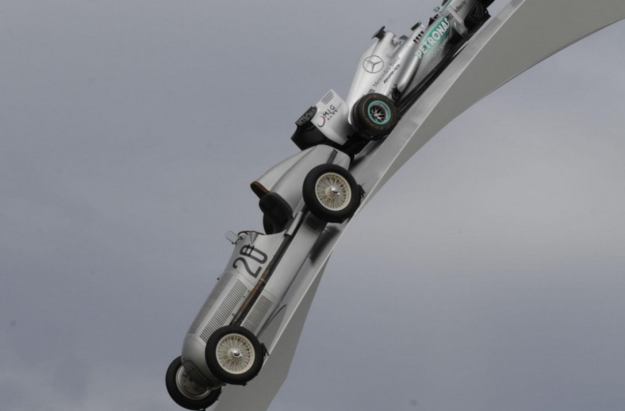 To Goodwood Festival of Speed είναι σε εξέλιξη και η εφετινή επίσημη γλυπτική παράσταση γιορτάζει τα 120 χρόνια της Mercedes-Benz στους αγώνες.