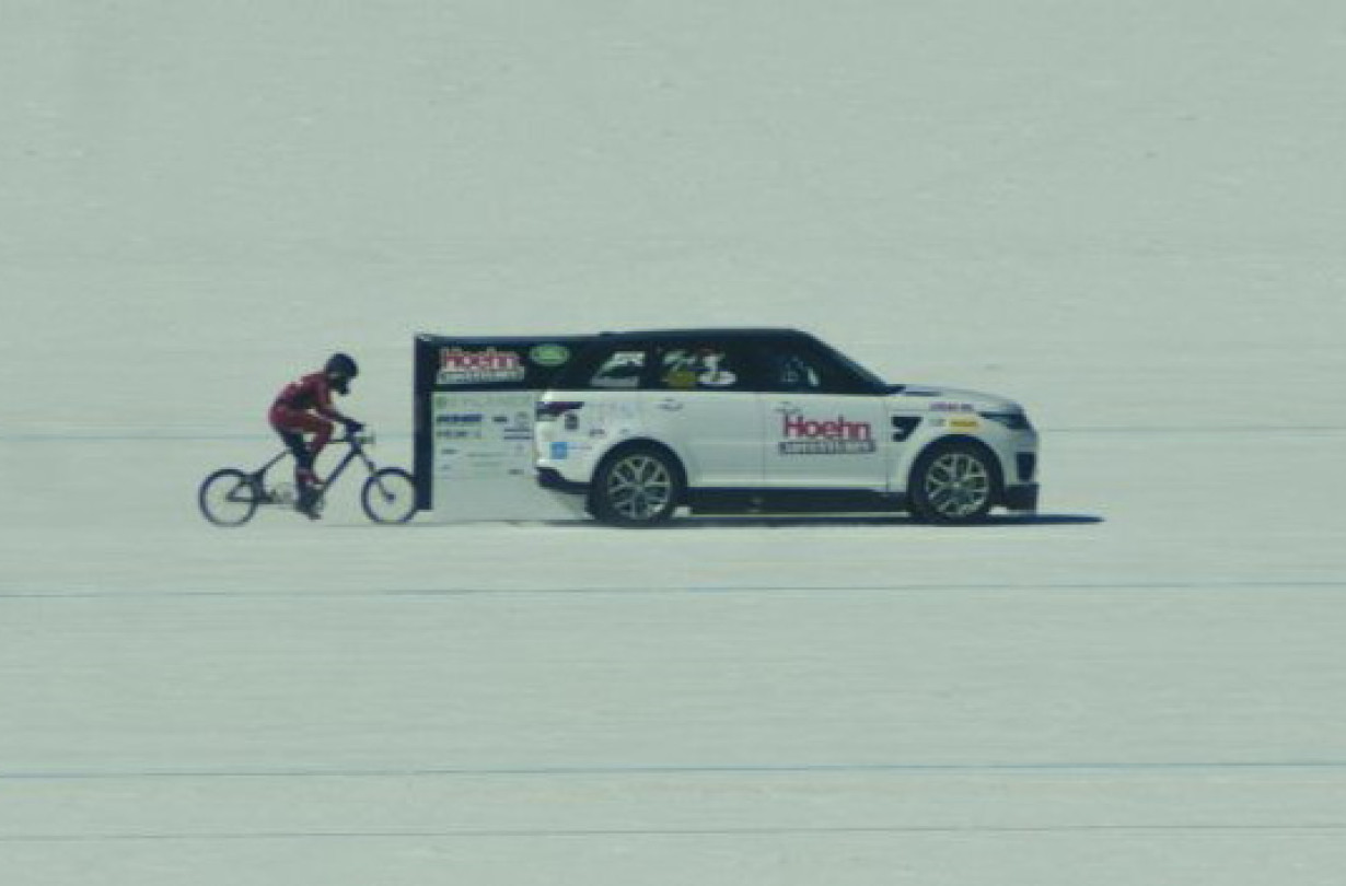 Ποδηλατούσε λίγα εκατοστά πίσω από ένα τροποποιημένο Land Rover, που έπαιζε τον ρόλο pace car. Ένα ειδικά σχεδιασμένο fairing στην ουρά του αυτοκινήτου διασφάλιζε την μειωμένη αεροδυναμική αντίσταση, απαραίτητη για την επίτευξη του ρεκόρ ταχύτητας. Αυτή είναι η διαδικασία που ακολουθείτε σε κάθε προσπάθεια επίτευξης ανάλογου ρεκόρ και είναι φυσικά καθοριστικής σημασίας να καταφέρει ο αναβάτης να μείνει εντός του ίχνους με την μειωμένη οπισθέλκουσα που αφήνει πίσω του το αυτοκίνητο. «Αν ξαφνικά με χτυπήσει μια ροή αέρα στα 200 km/h θα με ρίξει κάτω», δήλωσε η Mueller.
