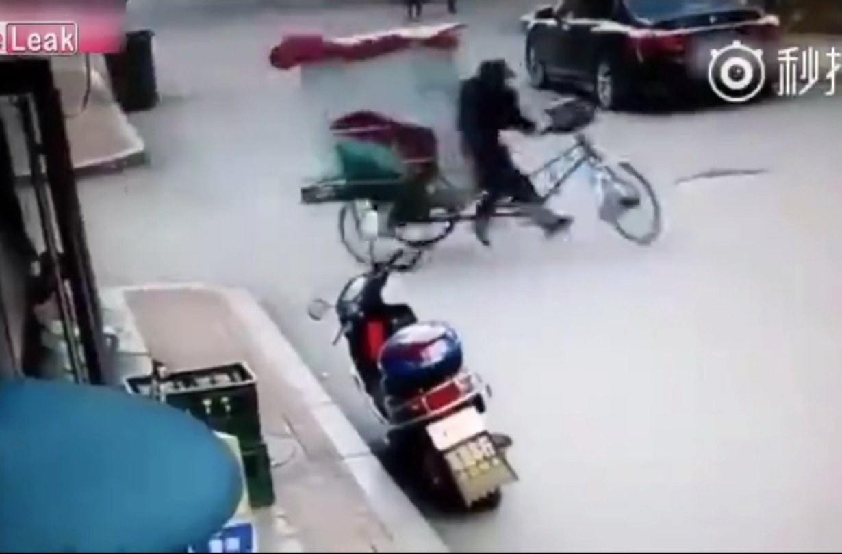 Προβλήματα όπως, για παράδειγμα, το κολλημένο γκάζι στο τρίκυκλο αυτού του ταλαίπωρου Κινέζου. Είχε ξεπεζέψει και το τρίκυκλο συνέχιζε να κινείται μόνο του. Τι να κάνει; Το μόνο που μπορούσε ήταν να κρατάει το τρίκυκλο από το τιμόνι ώστε αυτό να κάνει κύκλους στο πλάτωμα της διασταύρωσης.