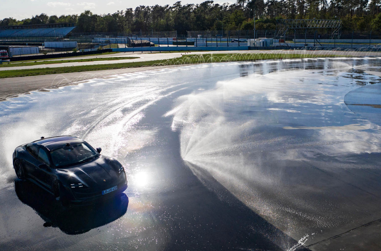 Η Taycan είχε πίσω από το τιμόνι της τον Ολλανδό εκπαιδευτή της Porsche, τον Dennis Retera, ο οποίος για την περίσταση χρησιμοποίησε μια πισωκίνητη έκδοση του αυτοκινήτου, φυσικά με όλα τα συστήματα ελέγχου πρόσφυσης απενεργοποιημένα. Ωστόσο ο ίδιος δήλωσε πως η διαδικασία δεν ήταν και τόσο εύκολη, καθώς στο βρεγμένο ειδικά για την περίσταση οδόστρωμα η πρόσφυση δεν ήταν παντού ίδια και απαιτούσε απόλυτη συγκέντρωση από τον οδηγό για να πετύχει το επιθυμητό αποτέλεσμα.
