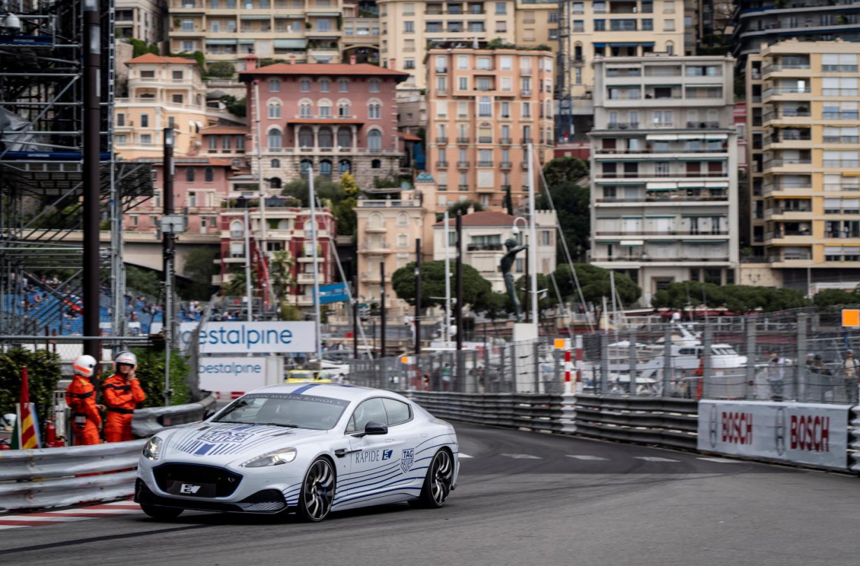 Ένα μήνα μετά την αποκάλυψη της Rapide E, το αυτοκίνητο βρέθηκε στο Πριγκιπάτο έχοντας στο τιμόνι τον Βρετανό Darren Turner, επίσημο οδηγό της ομάδας στους αγώνες αντοχής.