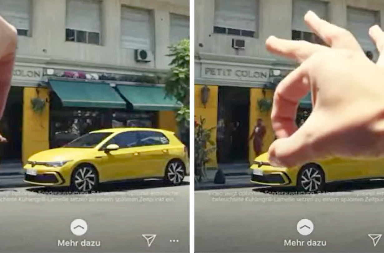 Το σποτ των 10 δευτερολέπτων που εμφανίστηκε την Τρίτη στο story της Volkswagen, παρουσιάζει το χέρι μιας γιγαντιαίας γυναίκας να διώχνει με άκομψο τρόπο έναν έγχρωμο περαστικό μακριά από το παρκαρισμένο VW Golf R Line το οποίο βρίσκεται σε πρώτο πλάνο.