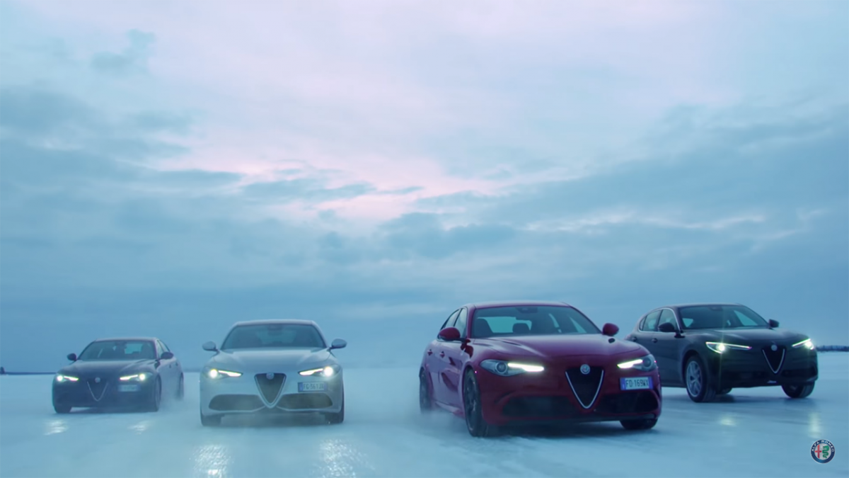 Η οδήγηση πάνω σε μια παγωμένη λίμνη αποτελεί μοναδική εμπειρία, ενώ το χαρακτηριστικό λυκόφως χαρίζει ξεχωριστές εικόνες και πλάνα. Αυτά τα στοιχεία πήγε να «εκμεταλλευτεί» η Alfa Romeo για να αναδείξει τον σπορ και ισορροπημένο χαρακτήρα των δύο μοντέλων της.
