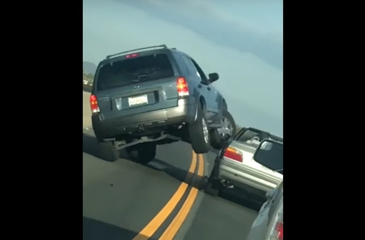 Αν κάνεις κάτι τέτοιο, πρέπει να περιμένεις την ανάλογη αντίδραση. Αλλά ο οδηγός του Ford, τυφλωμένος από θυμό, ξεπέρασε κάθε όριο. Πέρασε στην αντίθετη λωρίδα κι έκανε απότομη τιμονιά δεξιά για να ανέβει με το SUV του πάνω στην ανοιχτή BMW! Θα μπορούσε κάλλιστα να τραυματίσει ή και να σκοτώσει τον οδηγό της BMW, αλλά η Θεία Δίκη, σε συνδυασμό με τη στοιχειώδη Φυσική, ανέτρεψε το Ford που έκατσε πάνω στην αριστερή πλευρά του.