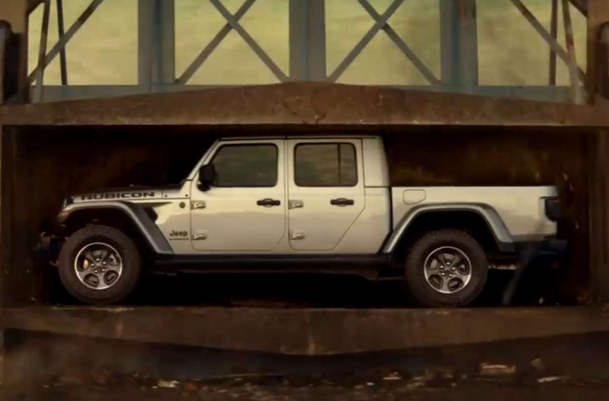 Η διαφήμιση που διαρκεί 55", ξεκινά με το κλασσικό Jeep Gladiator του 1963, το οποίο καταλήγει στην πρέσα. Μέσω ειδικών εφέ, οι λαμαρίνες του ιστορικού μοντέλου αντιστέκονται στην πίεση και σταδιακά μετατρέπονται στο ολοκαίνουριο μοντέλο. Όπως παραδέχθηκε η Jeep, για τις ανάγκες του διαφημιστικού σποτ καταστράφηκε το παλιό Gladiator, το οποίο όμως δεν ήταν δυνατό να επισκευαστεί.