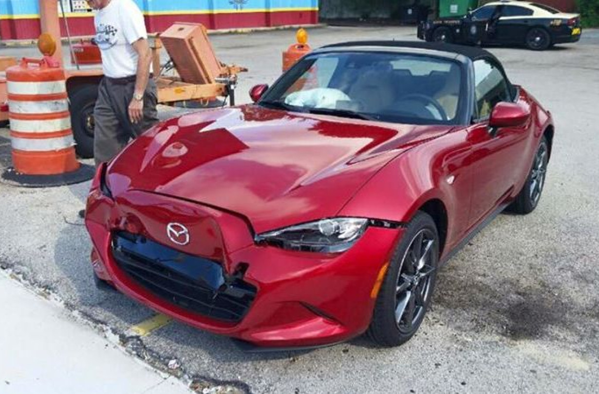 Το περασμένο Σάββατο ένας κάτοικος της πόλης Jacksonville στη Florida, ο οποίος ακούει στο ιντερνετικό ψευδώνυμο SCSM, παρέλαβε μετά από μερικούς μήνες αναμονής το καινούργιο του Mazda MX-5 από την τοπική αντιπροσωπεία. Ήταν μάλιστα ένα από τα 1.000 Launch Edition που θα διατεθούν στην αγορά των ΗΠΑ. Όμως η πρώτη βόλτα με το νέο του roadster δεν θα διαρκούσε πολύ, αφού μόλις ένα μίλι μακριά από την αντιπροσωπεία ενεπλάκη σε τροχαίο.