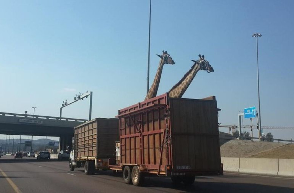 Κάτι που όπως φαίνεται δεν φρόντισε να κάνει ο οδηγός του φορτηγού που την περασμένη Πέμπτη μετέφερε δύο καμηλοπαρδάλεις στον αυτοκινητόδρομο Ν1 της Ν. Αφρικής, έξω από την Pretoria. Φτάνοντας κάτω από μια χαμηλή γέφυρα το ένα από τα δύο ζώα χτύπησε με το πίσω μέρος του κεφαλιού του στο τσιμέντο, με αποτέλεσμα να υποστεί σοβαρούς τραυματισμούς και τελικά να ξεψυχήσει.