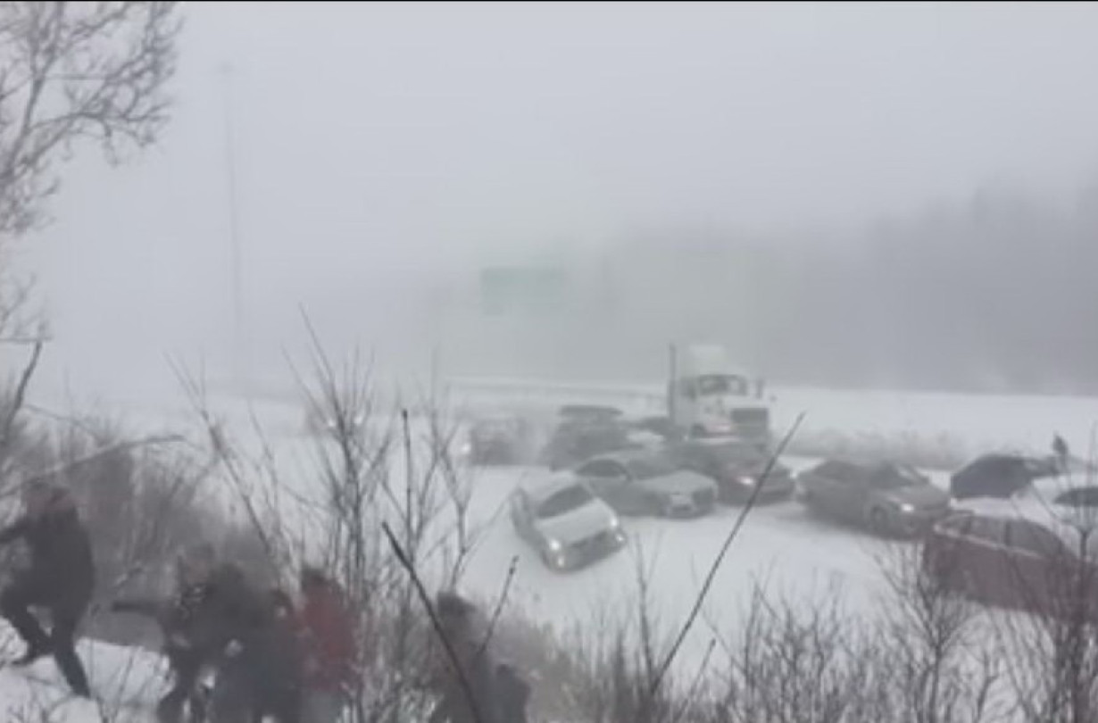 Καραμπόλα 50 αυτοκινήτων σε χιονισμένο αυτοκινητόδρομο του Καναδά [video]