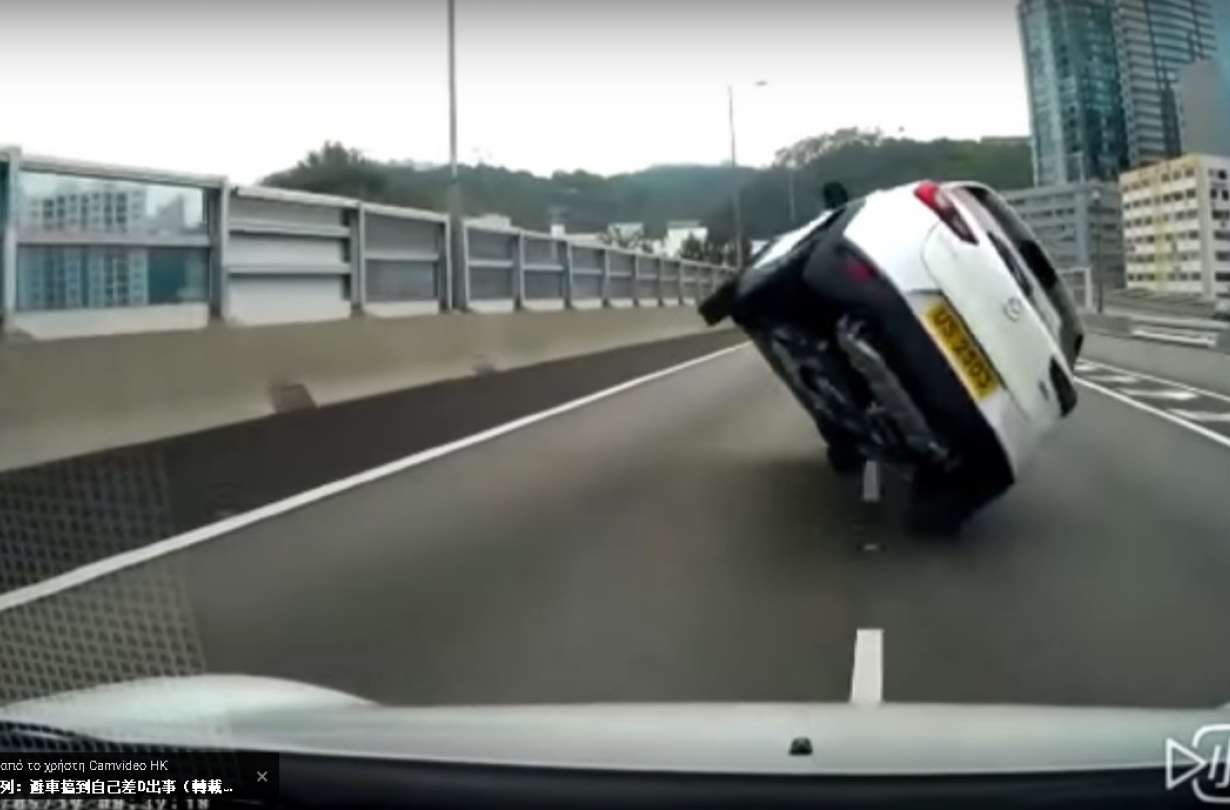 Το γεγονός είναι ότι το crossover, με το σχετικά ψηλό κέντρο βάρους του, σηκώθηκε στους δύο τροχούς με την απότομη τιμονιά. Και ο οδηγός του, σίγουρα από τύχη, κράτησε το τιμόνι σταθερό μέχρι το αυτοκίνητο να προσγειωθεί ομαλά στους τέσσερις τροχούς του, λίγες δεκάδες μέτρα αργότερα.