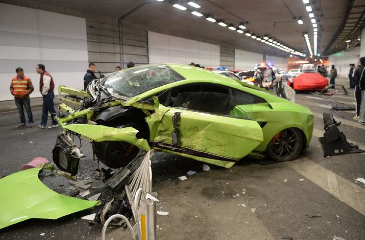 Μια Lamborghini Gallardo Superleggera και μια Ferrari 458 Spider συγκρούσθηκαν κοντά στο Εθνικό Στάδιο του Πεκίνου το Μ. Σάββατο το βράδυ. Οι δύο οδηγοί τραυματίστηκαν ελαφρά ύστερα από τη σύγκρουση με υψηλή ταχύτητα στον τομέα της Βόρειας Ακτής του τούνελ στον Beijing Datun Road.