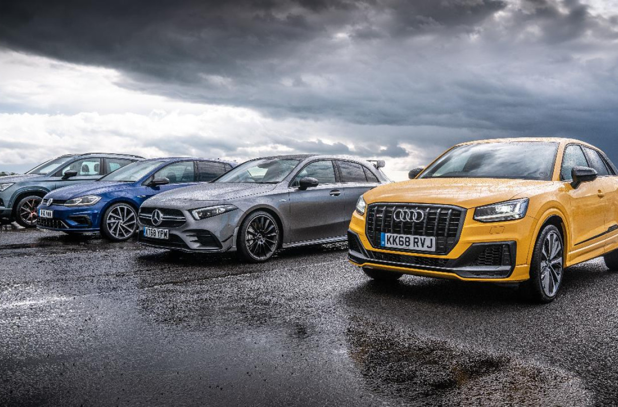 Το βρετανικό Top Gear πήρε δύο από τα πιο καυτά, τετρακίνητα χάτσμπακ της αγοράς, τη νέα Mercedes-AMG A 35 και το καθιερωμένο VW Golf R, με περίπου 300 άλογα το καθένα για κάπου 1.500 κιλά βάρους, και τα έστησε δίπλα σε δύο καυτά crossover του ομίλου VW: το Audi SQ2 και το μεγαλύτερο Cupra Ateca, που έχουν κι αυτά τον ίδιο 2λιτρο κινητήρα TSI με το Golf R.
