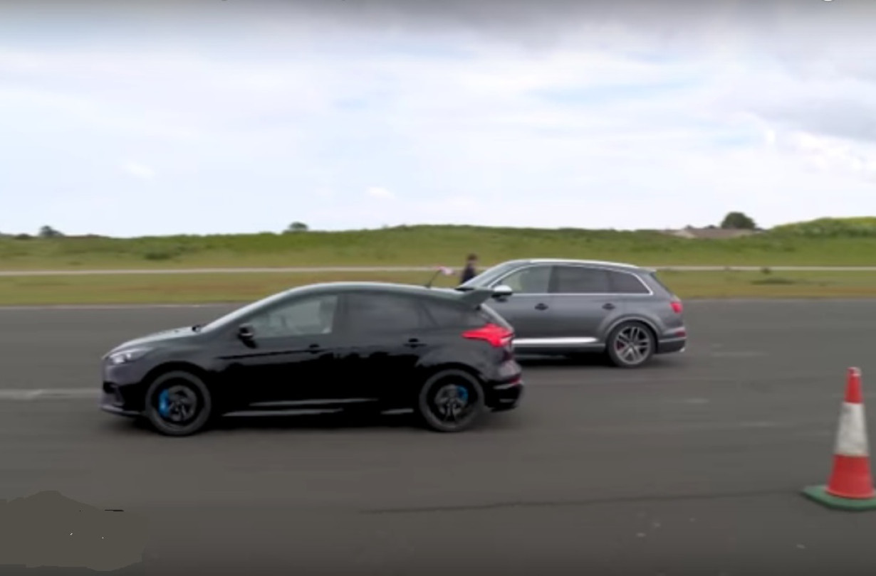 Το βρετανικό Top Gear, λοιπόν, πήρε ένα Focus RS και το έστησε στην ευθεία δίπλα σε ένα Audi SQ7. Ναι, το τεράστιο SUV των δυόμιση τόνων, με το αυτόματο κιβώτιο. Μπορεί οι προδιαγραφές αυτές να μην ακούγονται ιδανικές για γρήγορη επιτάχυνση, όμως από την άλλη το SQ7 έχει έναν 4λιτρο V8 ντίζελ με τρία τούρμπο, 435 άλογα και 91,7 kgm ροπής από τις 1.000 μόλις rpm!