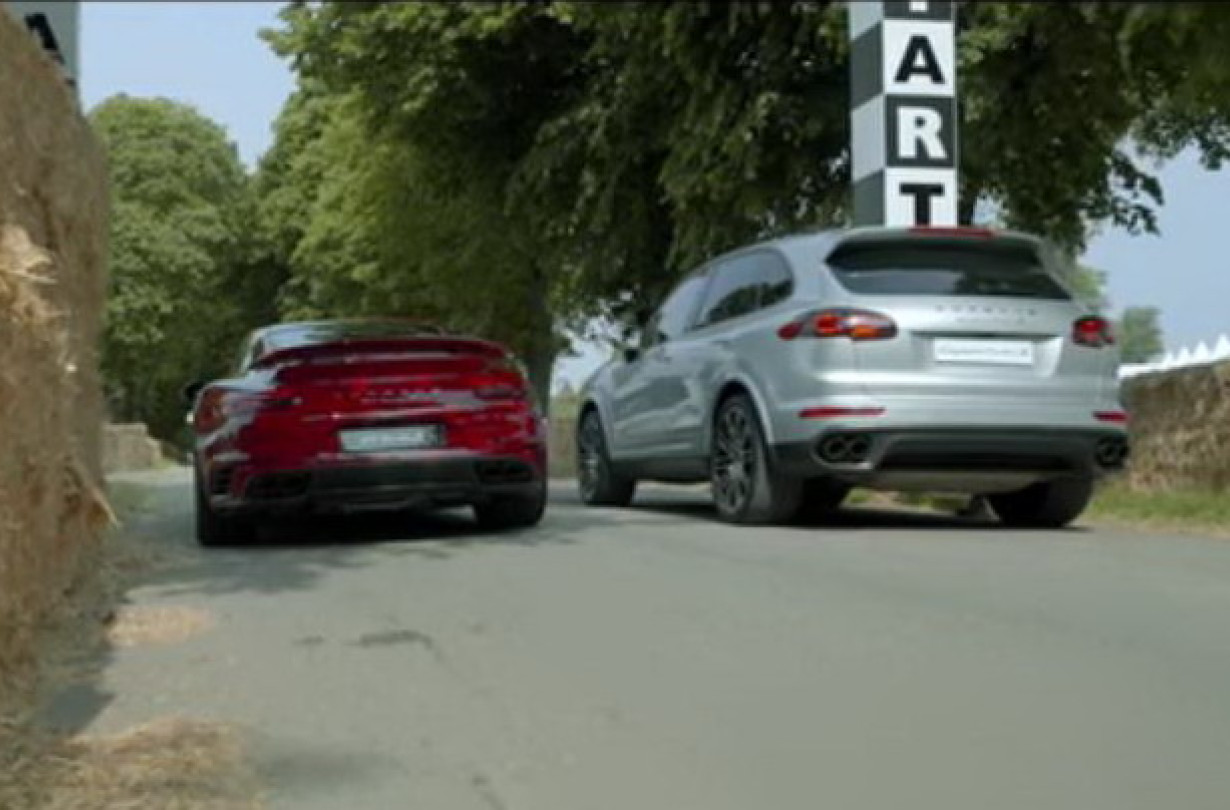 H Porsche λανσάρει την Cayenne Turbo S στο φετινή εκδήλωση Goodwood Festival of Speed και σκέφτηκε ότι ο καλύτερος τρόπος για να διαφημίσει το πόσο σπορ είναι το SUV της ήταν να το βάλει σε κόντρα με την 911 Turbo S.