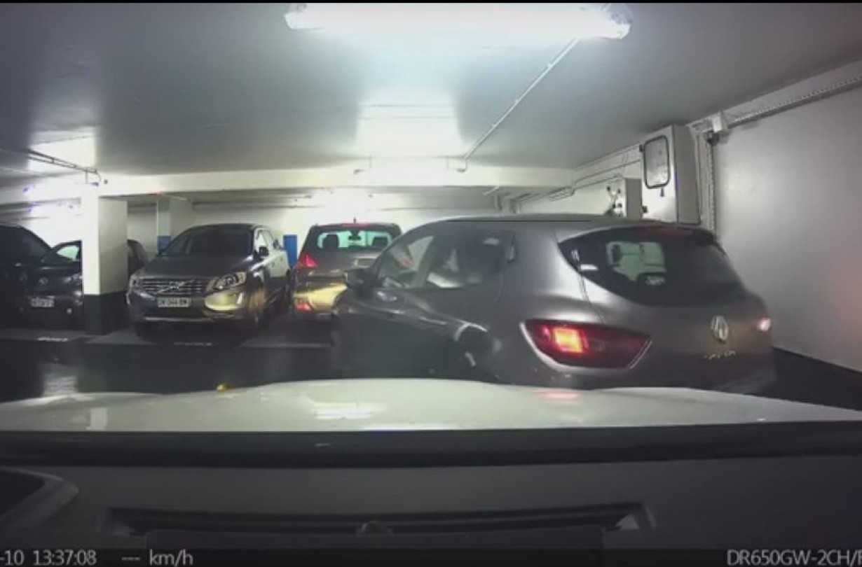 Αρχικά βάζει το αυτοκίνητο στη (στενή) θέση με την όπισθεν. Σωστή επιλογή, αφού έτσι το Clio του και το διπλανό Peugeot 3008 έχουν μπλοκαρισμένες τις δεξιές τους πόρτες και όχι αυτές του οδηγού. Όμως αυτό δεν φαίνεται να τον ικανοποιεί, ίσως γιατί κρίνει ότι δεν θα μπορέσει να βγει άνετα από το αυτοκίνητο.