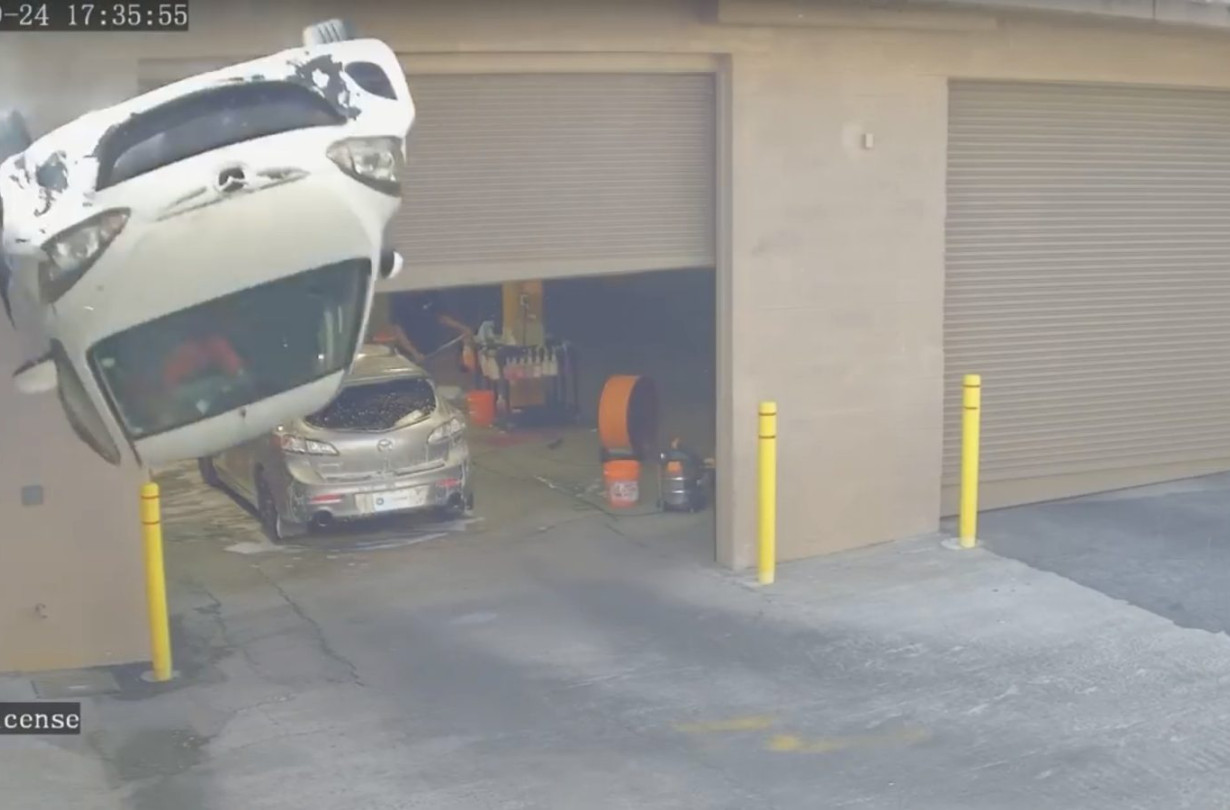 Ευτυχώς, το δεύτερο σενάριο ήταν αυτό που έγινε πράξη στην Atlanta των ΗΠΑ, όταν ένα λευκό Mazda 2 έφυγε από το δρόμο, διέσχισε έναν άδειο χώρο στάθμευσης, χτύπησε στην οροφή ενός ιατρείου χειροπρακτικής και τελικά κατέληξε να σταματήσει ανάποδα, μπροστά σε ένα πλυντήριο αυτοκινήτων. Ο 63χρονος οδηγός του, Stanley Clarke, βγήκε σώος, ενώ το αυτοκίνητο δεν ακούμπησε κανέναν άλλο άνθρωπο, προκαλώντας μόνο υλικές ζημιές.