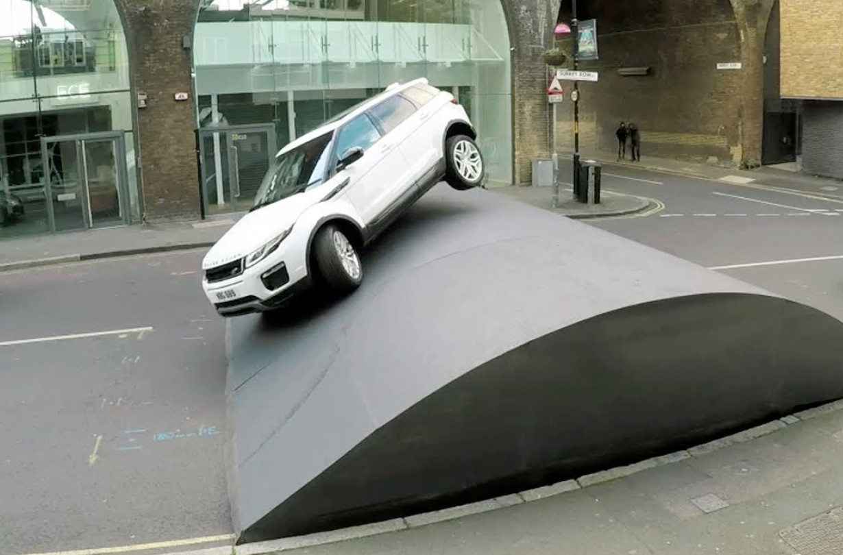 Φυσικά, ένα συνηθισμένο σαμαράκι δρόμου δεν μπορεί να αναδείξει τις δυνατότητες ενός SUV. Γι’ αυτό Land Rover έφτιαξε «το μεγαλύτερο σαμαράκι του κόσμου», πραγματικά τερατωδών διαστάσεων, και το έστησε σε ένα δρόμο βρετανικής πόλης. Ήταν τόσο μεγάλο, που σταμάτησε την κυκλοφορία αφού κανένα αυτοκίνητο δεν μπορούσε να το περάσει. Κάποιοι δοκίμασαν, αλλά απέτυχαν και μάλιστα με κωμικό τρόπο.