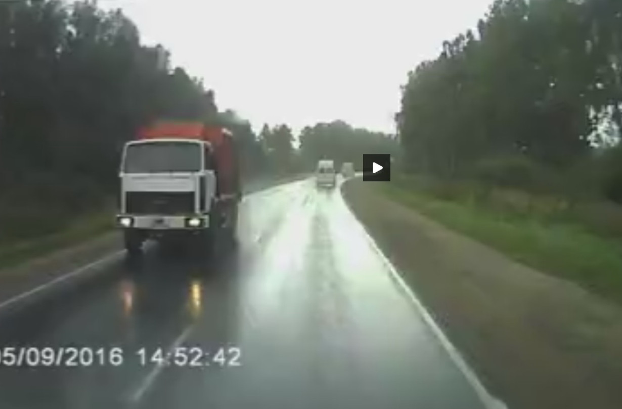 Το φορτηγό που ήταν εφοδιασμένο με την κάμερα που κατέγραψε το τραγικό δυστύχημα, δείχνει ο οδηγός του σε μια ελαφριά δεξιά καμπή να μπαίνει στο αντίθετο ρεύμα και να συγκρούεται μετωπικά με ένα αντιδιερχόμενο και ανήμπορο να αντιδράσει βαν Mercedes-Benz Vito.
