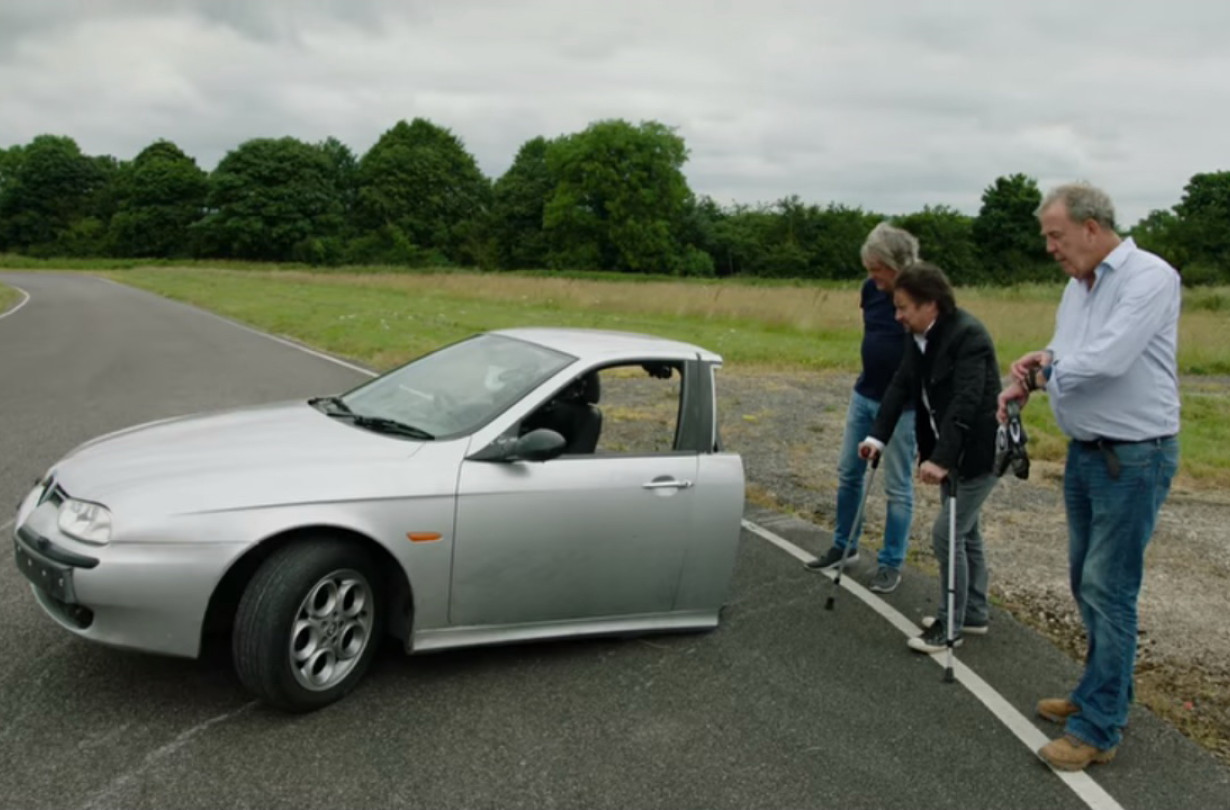 Μεταξύ μας, το Celebrity Brain Crash ήταν λίγο κρύο κι επαναλαμβανόμενο, με τους προσκεκλημένους VIPs να σκοτώνονται πριν έρθουν στο στούντιο. Πάντως φαίνεται ότι η Amazon θέλει να διατηρήσει κάποιο τμήμα με celebrities – και γι’ αυτό ο Clarkson έχει μια φαεινή ιδέα: Να κόψει στη μέση μια Alfa Romeo (156) και να βάλει τους VIPs να την οδηγούν!