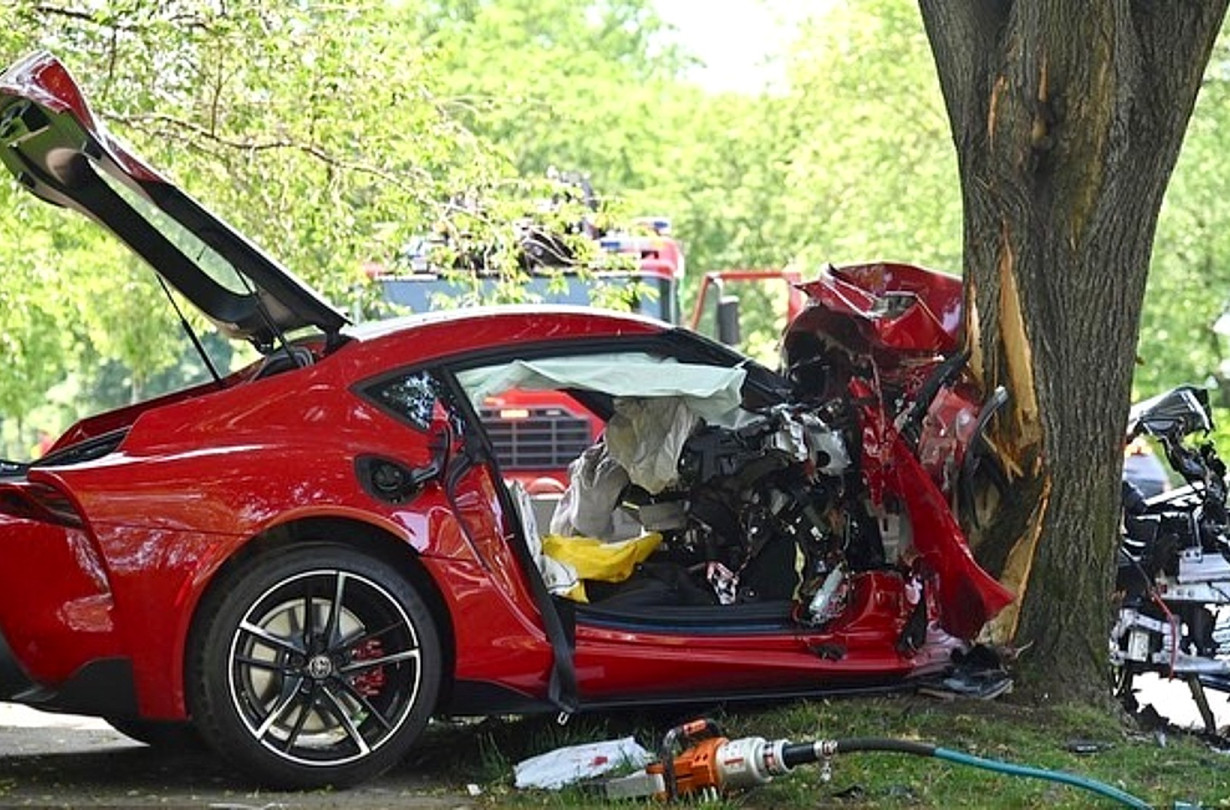 Ο οδηγός έχασε τον έλεγχο με αποτέλεσμα η Toyota GR Supra να καταλήξει πάνω σε ένα δέντρο στην άκρη του δρόμου.