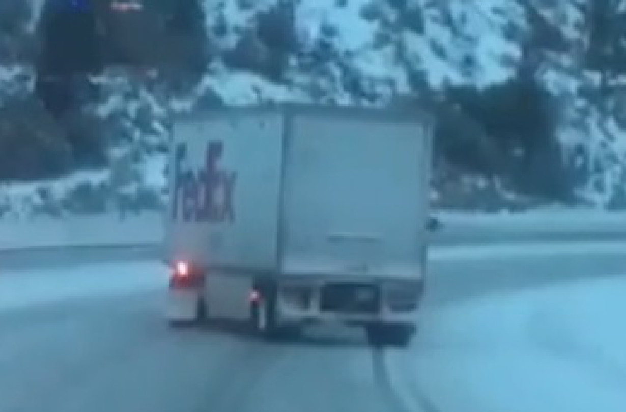Όπως μπορείτε να δείτε αυτή η τεράστια νταλίκα της FedEx φαίνεται να έχει επιδοθεί σε κάποια μεγαλόπρεπα ντριφτ με τα περιπολικά να ακολουθούν ανίσχυρα να κάνουν οτιδήποτε μέσα στο πυκνό χιόνι.