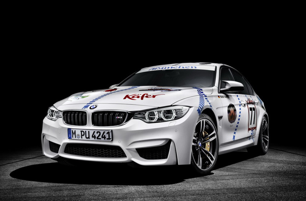 Έτσι, η φορεσιά της BMW M3 για την περίσταση είναι με τα χρώματα και τα σήματα της «Münchner Wirte», ως αναφορά στη θρυλική BMW M1 Procar του 1981, σε συνδυασμό με ζωγραφική προσόψεων βαυαρικού στιλ και το κλασικό πλεκτό σχοινί σε άσπρο και γαλάζιο.