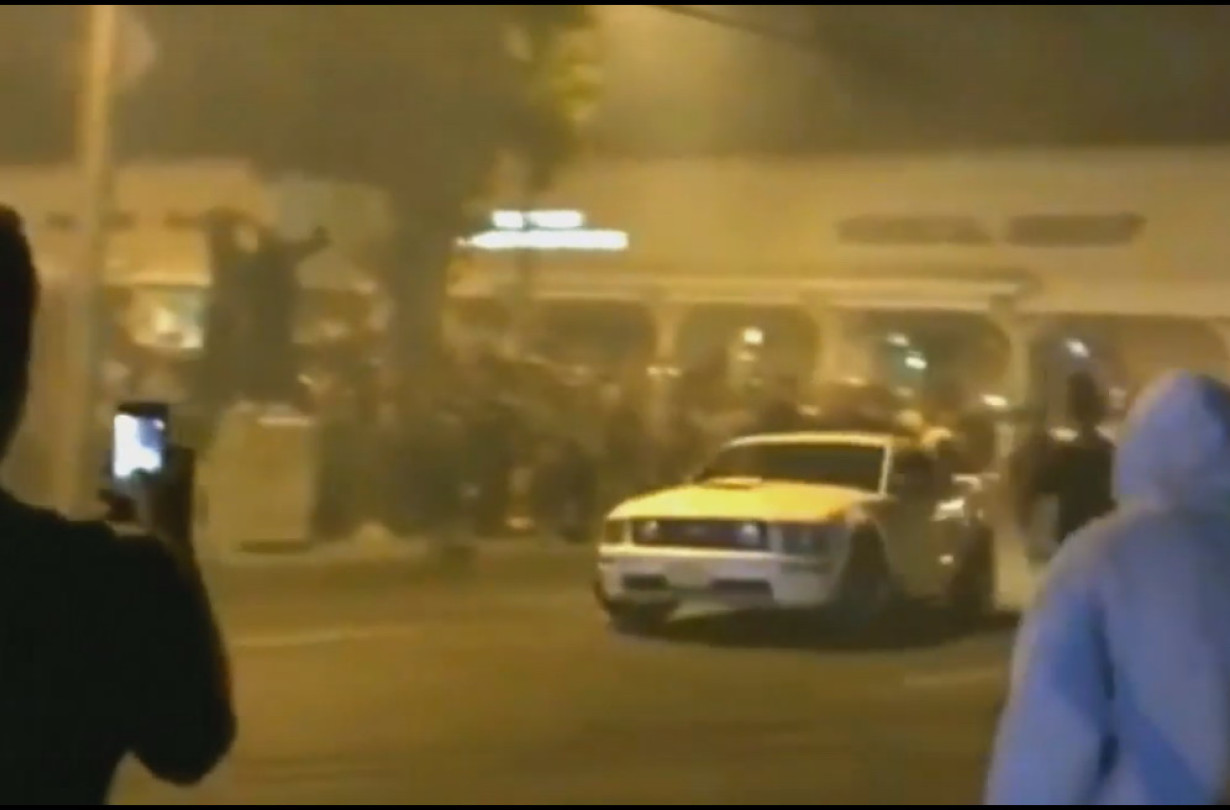 Όλα ξεκίνησαν λοιπόν σε μια παράνομη συνάντηση για κόντρες και επίδειξη στο Bellflower της California. Ο οδηγός της Mustang φαίνεται στην αρχή ότι «το έχει», κάνοντας μερικά ντόνατς με αρκετούς να τον επευφημούν και κάποιους πιο ριψοκίνδυνους να χορεύουν με τη Mustang το χορό του Ζαλόγγου για να έχουν καλύτερη λήψη στο κινητό.