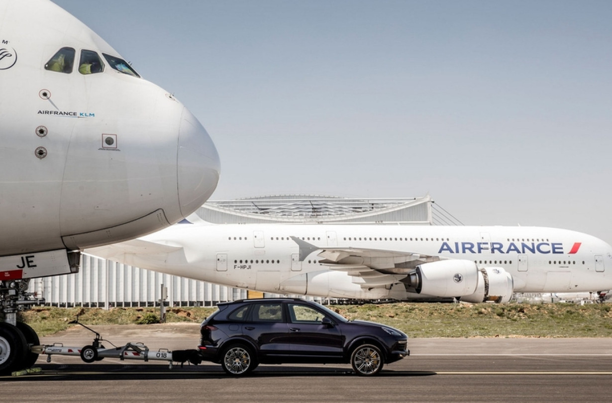 Επισήμως, οι περισσότερες εκδόσεις της Porsche Cayenne μπορούν να ρυμουλκήσουν νόμιμα μέχρι 3,5 τόνους. Όμως για την κατάκτηση του αντίστοιχου ρεκόρ, η Porsche έβαλε μια Cayenne S Diesel παραγωγής να τραβήξει ένα ολόκληρο αεροπλάνο. Κι όχι ένα τυχαίο, αλλά το μεγαλύτερο: ένα Airbus A380 της Air France, με βάρος... 285 τόνων.