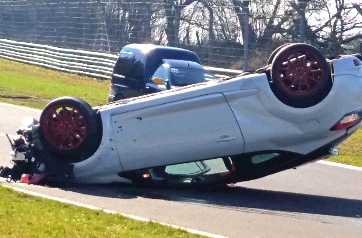 Ένα Mégane RS χτυπάει στις μπαριέρες της Πράσινης Κόλασης και καταλήγει να σέρνεται με την οροφή στο οδόστρωμα.