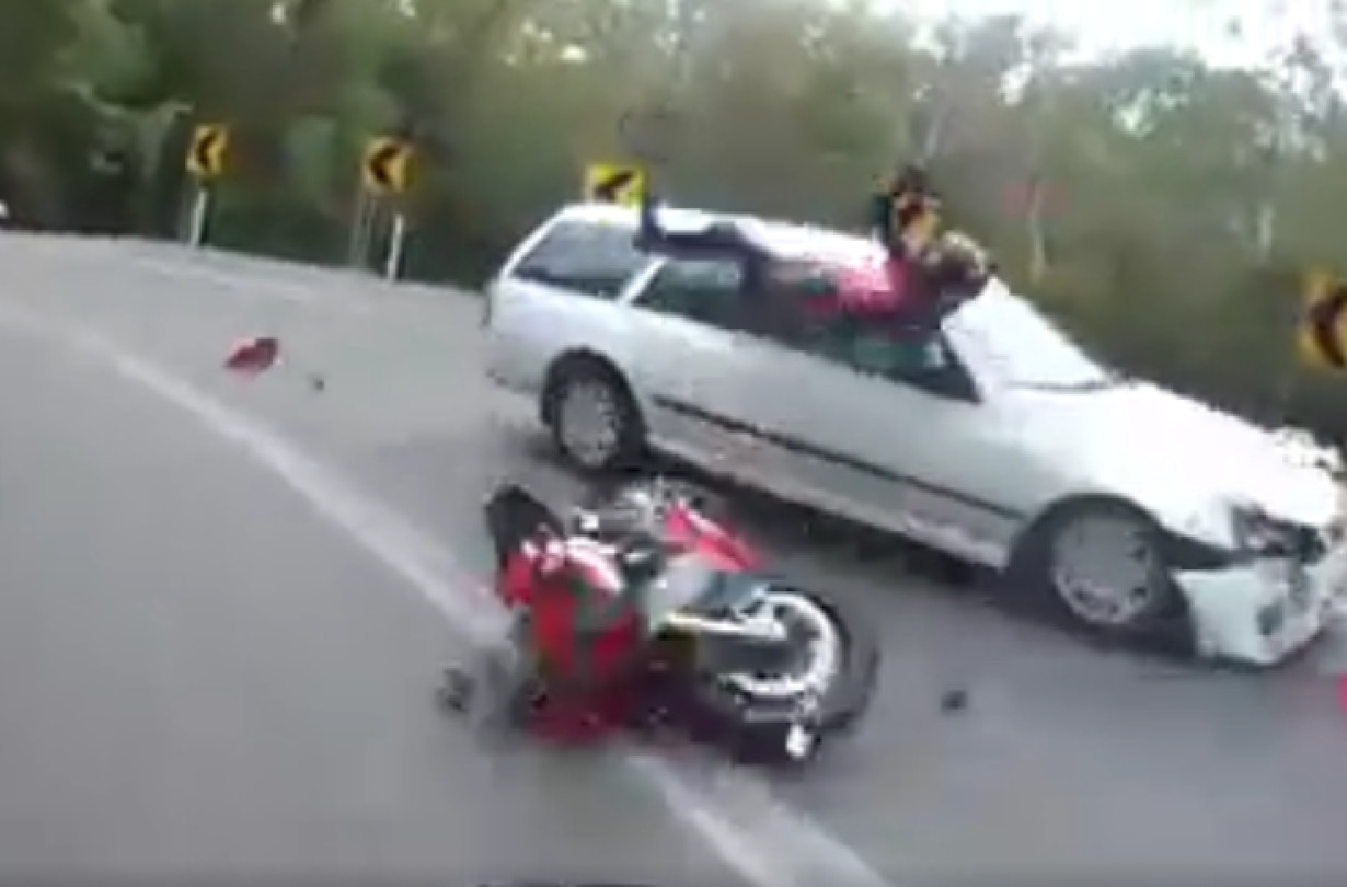 Στο video που θα δείτε, ο αναβάτης φαίνεται πεπειραμένος, μέχρι τη στιγμή που κάνει το κλασικό λάθος του αρχάριου, ερχόμενος για να πάρει μια στροφή με παραπάνω ταχύτητα από αυτή που μπορεί να παραμείνει στη λωρίδα του. Οπότε αναγκάζεται να ισιώσει, να φρενάρει και τελικά να μπει στο αντίθετο ρεύμα –φευ- τη στιγμή που ερχόταν αυτοκίνητο σε έναν αρχικά και φαινομενικά έρημο δρόμο.