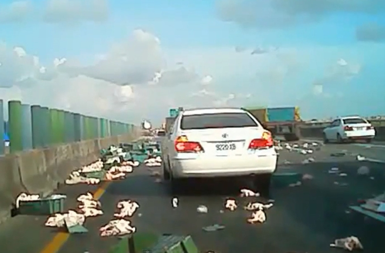 Δεκάδες πουλερικά κάλυψαν δύο λωρίδες ενός αυτοκινητόδρομου στην Taiwan μετά το ατύχημα που είχε το φορτηγό που τα μετέφερε.