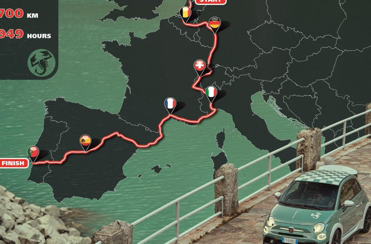 Ξεκινώντας από την Ολλανδία και διασχίζοντας το Βέλγιο, τη Γερμανία, την Ελβετία, την Ιταλία, τη Γαλλία, την Ισπανία και καταλήγοντας μετά από 3.700 km στην Πορτογαλία, το Abarth 695 70° Anniversario, μέσα σε 1.949 ώρες κάτι περισσότερο δηλαδή από 80 ημέρες, θα μεταφέρει την αγάπη για την περιπέτεια και την ταχύτητα του ιδρυτή της μάρκας Carlo Abarth, αλλά και του εξίσου ονειροπόλου Βέρν.