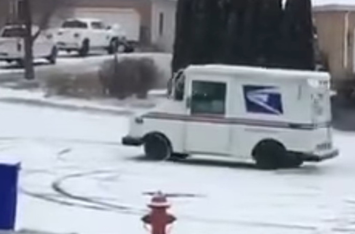 Κάπου στην Αμερική, ένας ταχυδρόμος είδε γλιστερό τερέν και είπε να το ρίξει λίγο έξω με το υπηρεσιακό του όχημα.