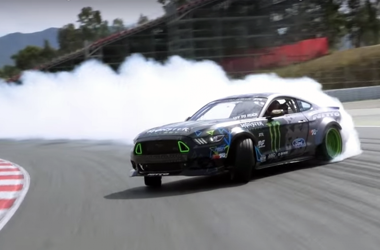 Ο Vaughn Gittin Jr. ώθησε στο όριο το Monster Energy Nitto Tire Ford Mustang RTR Spec 5-D, ντριφτάροντας όλη σχεδόν την πίστα F1 της Βαρκελώνης.