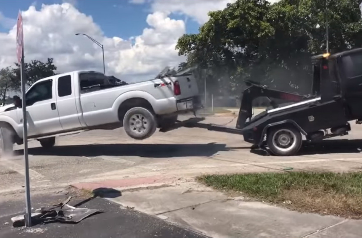 Κατά το Νόμο, όταν σηκώσει το αυτοκίνητό σου ο γερανός, αυτό είναι στην κατοχή της εταιρείας ρυμούλκησης ή της αστυνομίας. Οπότε, το να επιχειρήσεις να το πάρεις πίσω δια της βίας είναι παράνομο. Χώρια που ο οδηγός του Ford έβαλε σε κίνδυνο ανθρώπους και περιουσίες. Τελικά, παρά τη δύναμη, την τετρακίνηση και το βάρος του, το σκληροτράχηλο F-150 δεν μπόρεσε να σπάσει τα δεσμά του.