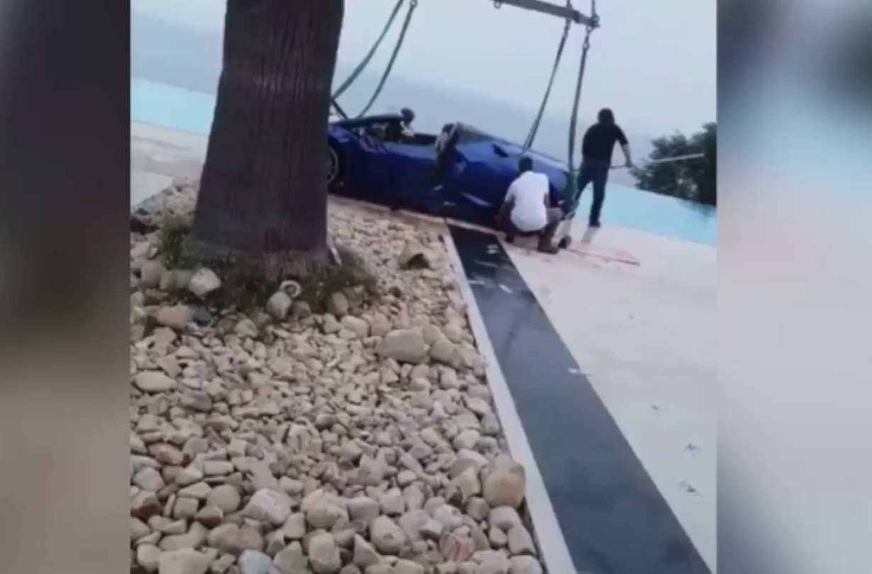 Η είδηση είναι πως η Vucelic κατάφερε και έπεσε με τη Lamborghini μέσα στην πισίνα!