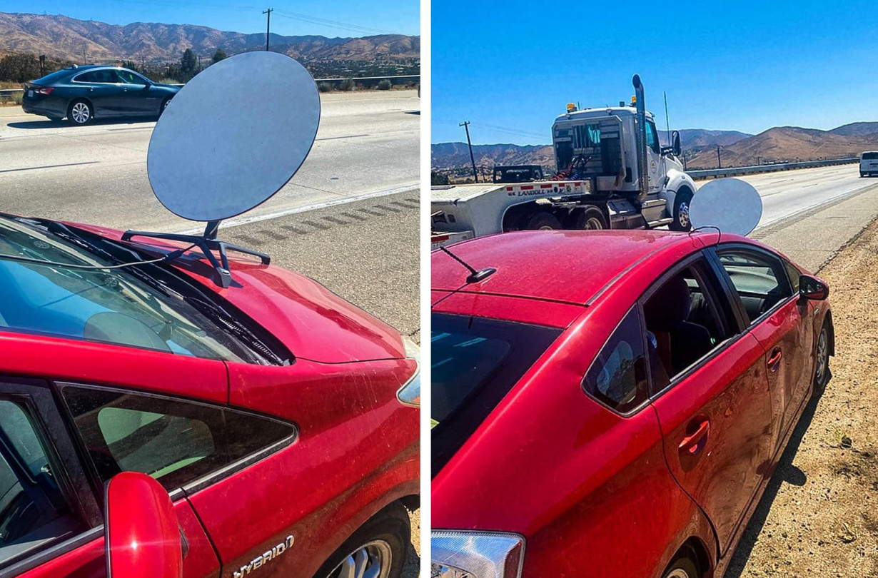 Οδηγούσε με το δορυφορικό πιάτο στο καπό του Toyota Prius γιατί… ήθελε Wi-Fi!