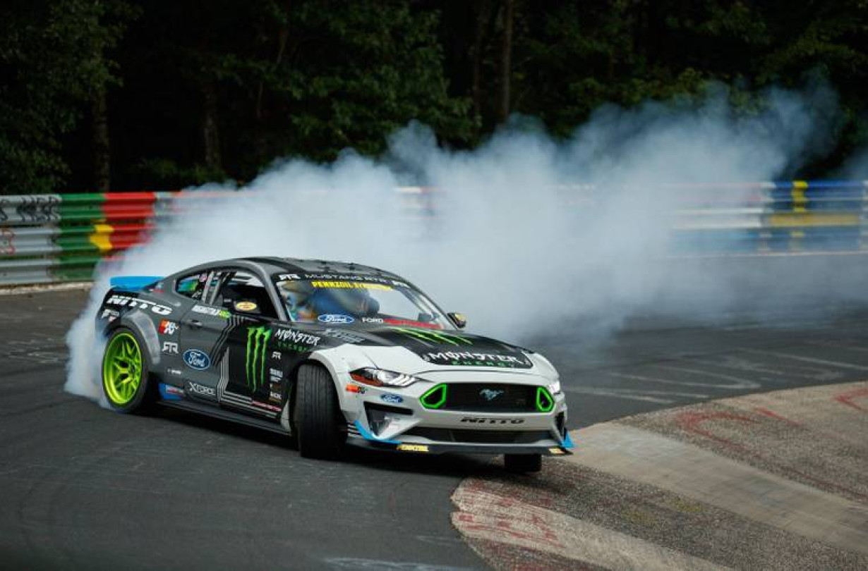 Τονίζοντας ότι το όλο εγχείρημα ήταν για “good time” (διασκέδαση) και όχι για “lap time” (χρόνο γύρου), ο 37χρονος πολυπρωταθλητής του ντριφτ είναι ο πρώτος οδηγός που έκανε με το πλάι και τα 20,7 km της κλασικής Nordschleife. Φυσικά χρησιμοποίησε τη γνωστή του Ford Mustang RTR Drift, με τον κομπρεσοράτο 5λιτρο V8 των 900+ PS.
