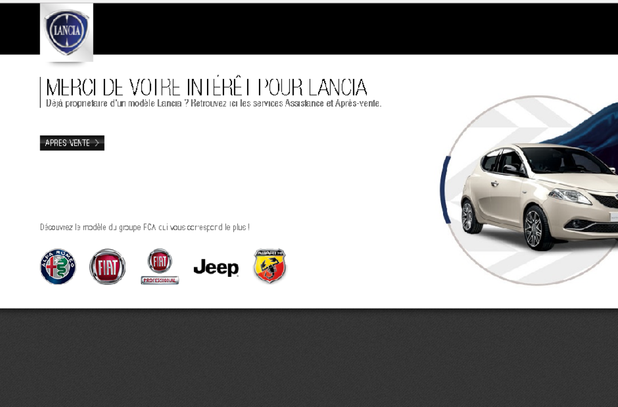 «Ευχαριστούμε για το ενδιαφέρον σας για τη Lancia. Είστε κάτοχος Lancia; Κάντε κλικ εδώ για υπηρεσίες after sales». Αυτό το μήνυμα είναι το μόνο πράγμα που θα βρείτε πλέον στα sites της Lancia, σε Γερμανία, Γαλλία, Ολλανδία, Ισπανία, Ελβετία και άλλες μεγάλες ευρωπαϊκές χώρες.