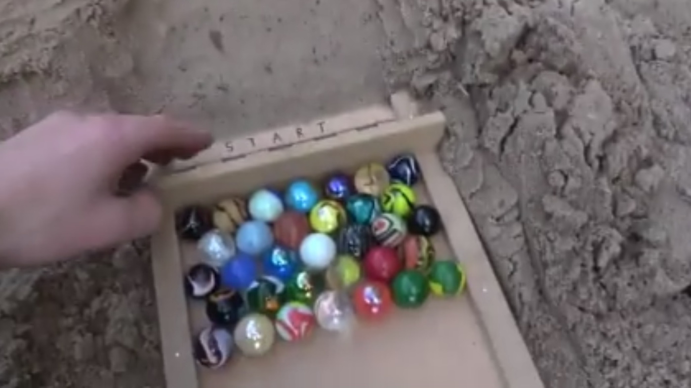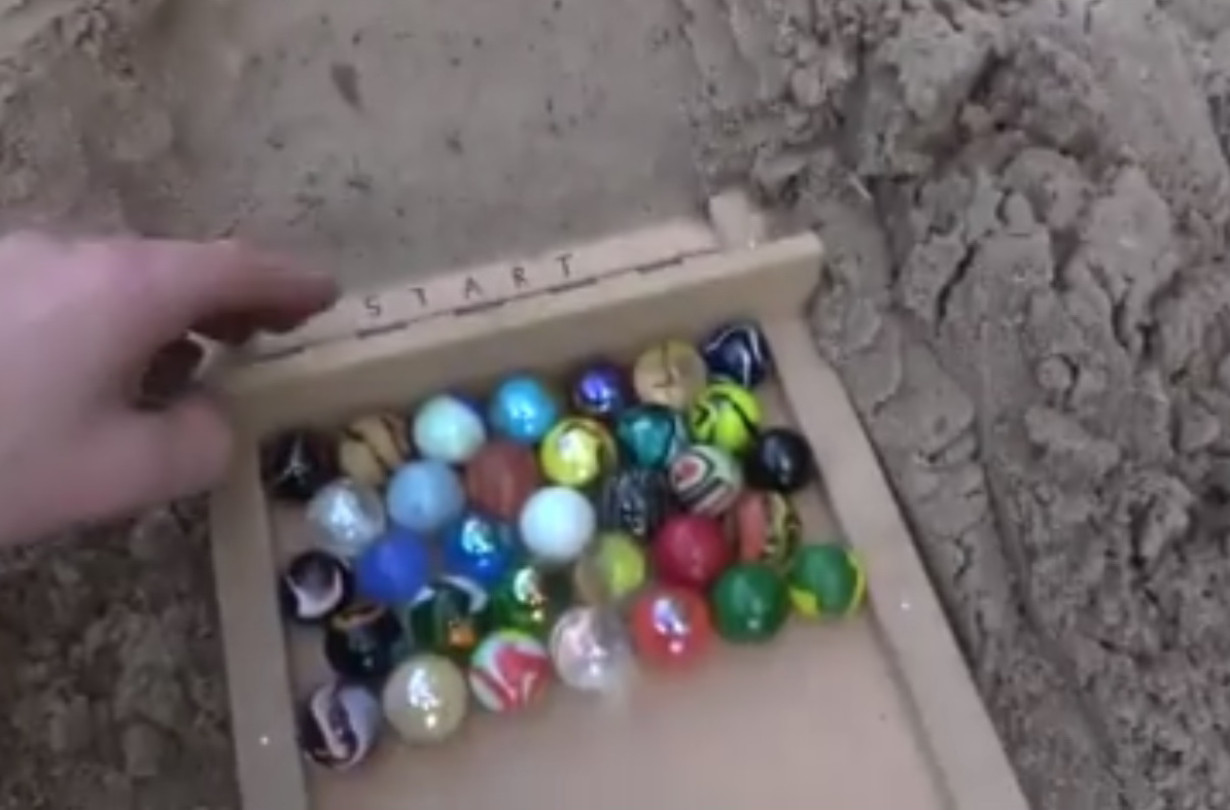 Στο σύνολο 33 βώλοι, όσα και τα μονοθέσια που εκκινούν στο Indy 500, χρησιμοποιώντας μόνο τη βαρύτητα και μια ατελείωτη πίστα, ένα λούκι, διαμορφωμένο σε μια λασπώδη πλαγιά, δεν μπορείς παρά να κολλήσεις, ποντάροντας νοερά σε έναν «αγωνιζόμενο» βώλο περισσότερο από τους άλλους. Απάντηση στο «γιατί;» δεν υπάρχει. Διότι, έτσι!