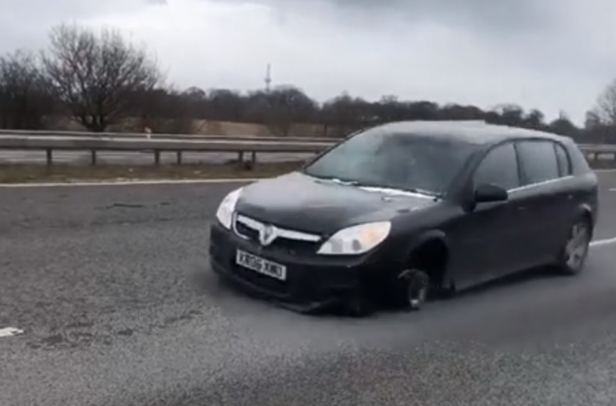 Η αστυνομία του Lancashire της Αγγλίας σταμάτησε ένα Vauxhall Signum που πήγαινε σαν να μη συνέβαινε τίποτε σε αυτοκινητόδρομο ενώ έλειπε ο εμπρός αριστερός τροχός του.