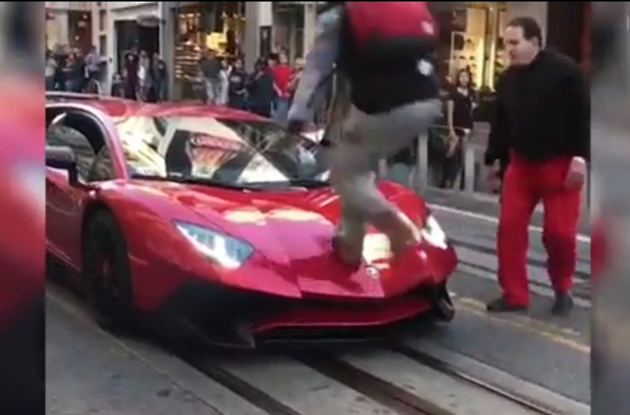 Πεζός περνάει πάνω από Lamborghini! [videos]