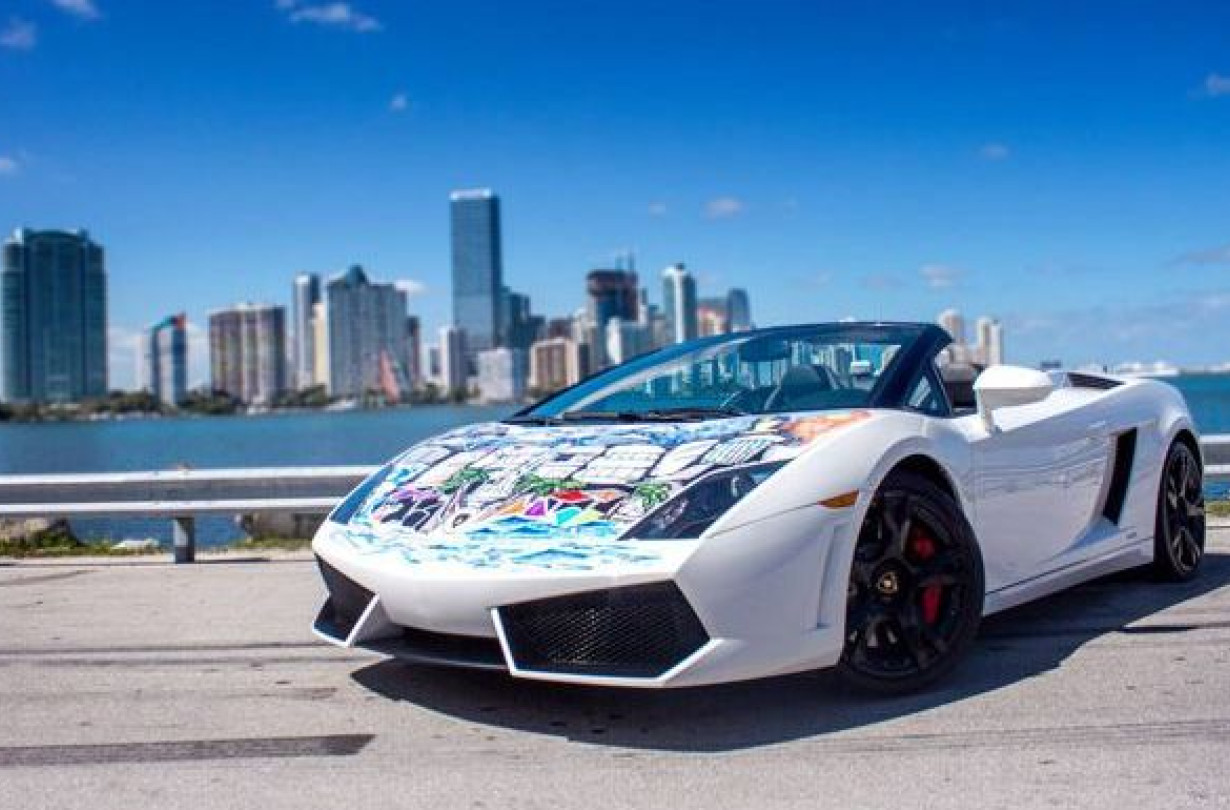 Στην Ελλάδα μια λευκή Lamborghini Gallardo σίγουρα δεν περνάει απαρατήρητη. Στο Miami όμως ίσως είναι αρκετά συνηθισμένο θέαμα. Οπότε τι κάνεις όταν θέλεις η δική σου να ξεχωρίζει από τις υπόλοιπες; Την παραχωρείς σε έναν ντόπιο καλλιτέχνη και τον αφήνεις να εκφραστεί στο καπό της. Το αποτέλεσμα απεικονίζει χαρακτηριστικά σημεία του Miami όπως τη λεωφόρο Ocean Drive και το ξενοδοχείο Colony Hotel.