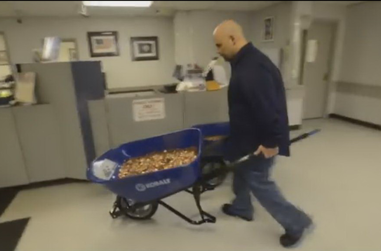 Πλήρωσε το τέλος ταξινόμησης με 300.000 κέρματα του 1 cent! [video]