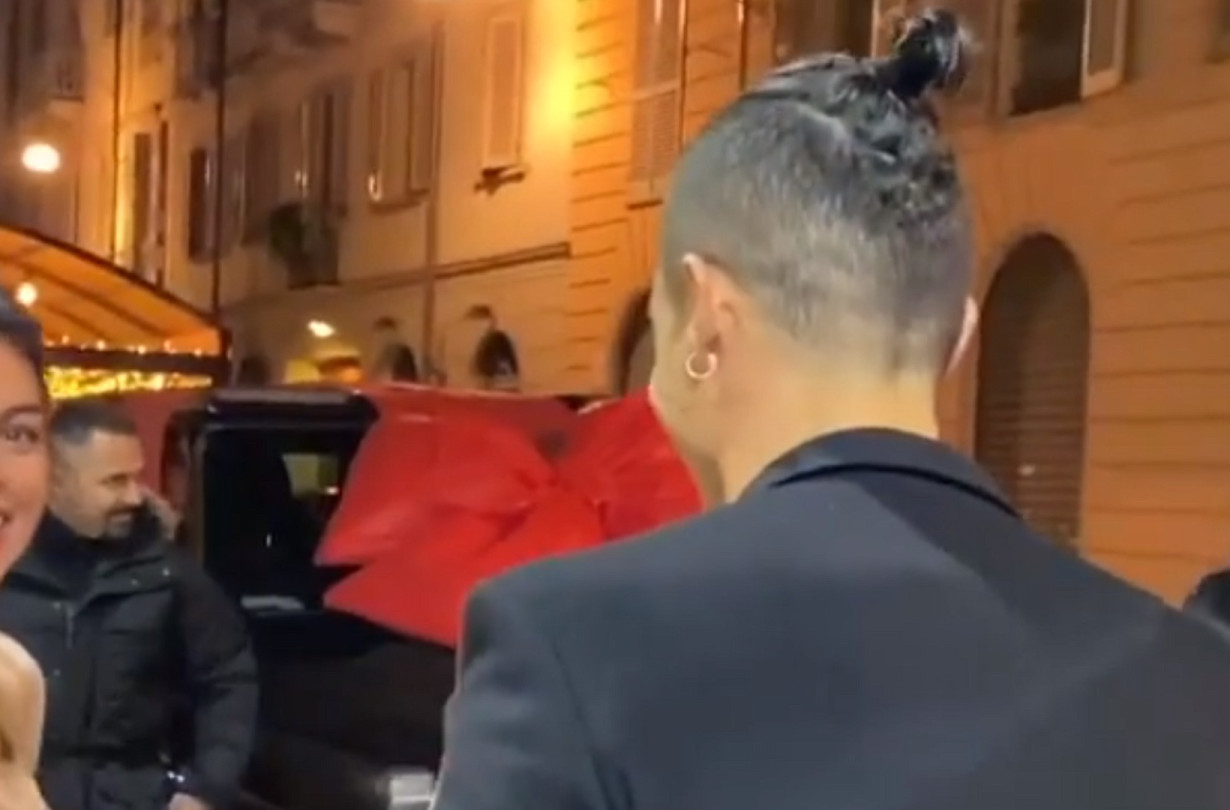 Η έκπληξη έλαβε χώρα έξω από εστιατόριο στο Τορίνο μετά από δείπνο του διάσημου ζευγαριού, με την κατάμαυρη Brabus να είναι ντυμένη με μια μεγάλη κόκκινη κορδέλα. Ο Christiano Ronaldo έδειξε πολύ χαρούμενος όταν αντίκρισε για πρώτη φορά το νέο του απόκτημα, και αγκάλιασε όλους τους παρευρισκόμενους. Η Georgina Rodriguez δημοσίευσε το εν λόγω βίντεο στο προφίλ της στο Instagram ώστε να μοιραστεί τις όμορφες στιγμές με τους 16,3 εκατομμύρια followers της. Στο δικό του προφίλ με 202 εκατομμύρια followers, o άσσος της Juventus δημοσίευσε μια εικόνα με την τούρτα, η οποία έφερε τα αρχικά C.R. και τον αριθμό 7 που έχει στη φανέλα του.