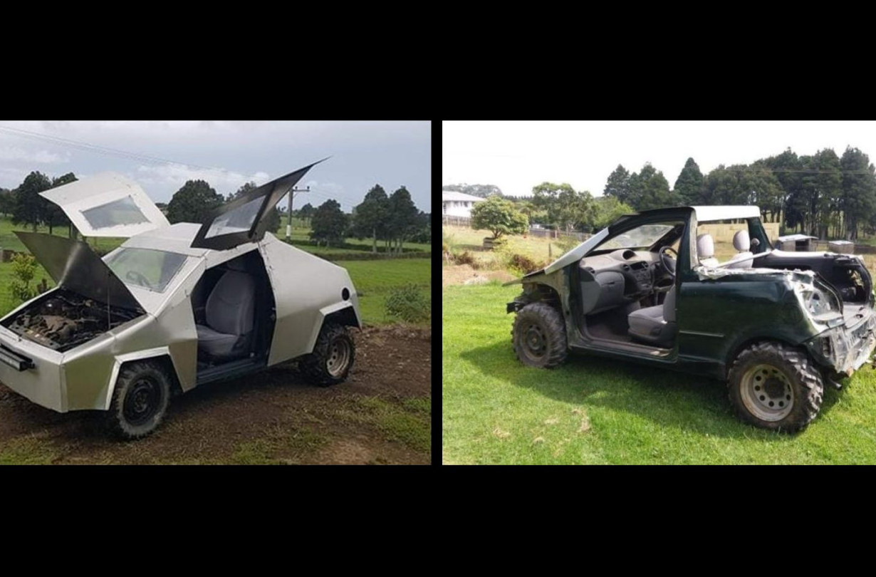 «Το έφτιαξα έτσι ώστε να δείχνει πιο όμορφο. Αυτό, παίζεται», αναφέρει ο ίδιος στην αγγελία. Το αμάξωμα αποτελείται από επίπεδα μεταλλικά πάνελ, πρόχειρα τοποθετημένα πάνω στο πετσοκομμένο πλαίσιο, ενώ στο εμπρός μέρος υπάρχει μια μπάρα LED. Το όχημα πατά σε off road λάστιχα, φορά 1.300άρη κινητήρα βενζίνης και είναι τετρακίνητο (!) –ναι, στην Ασία το μοντέλο διατέθηκε και ως AWD.
